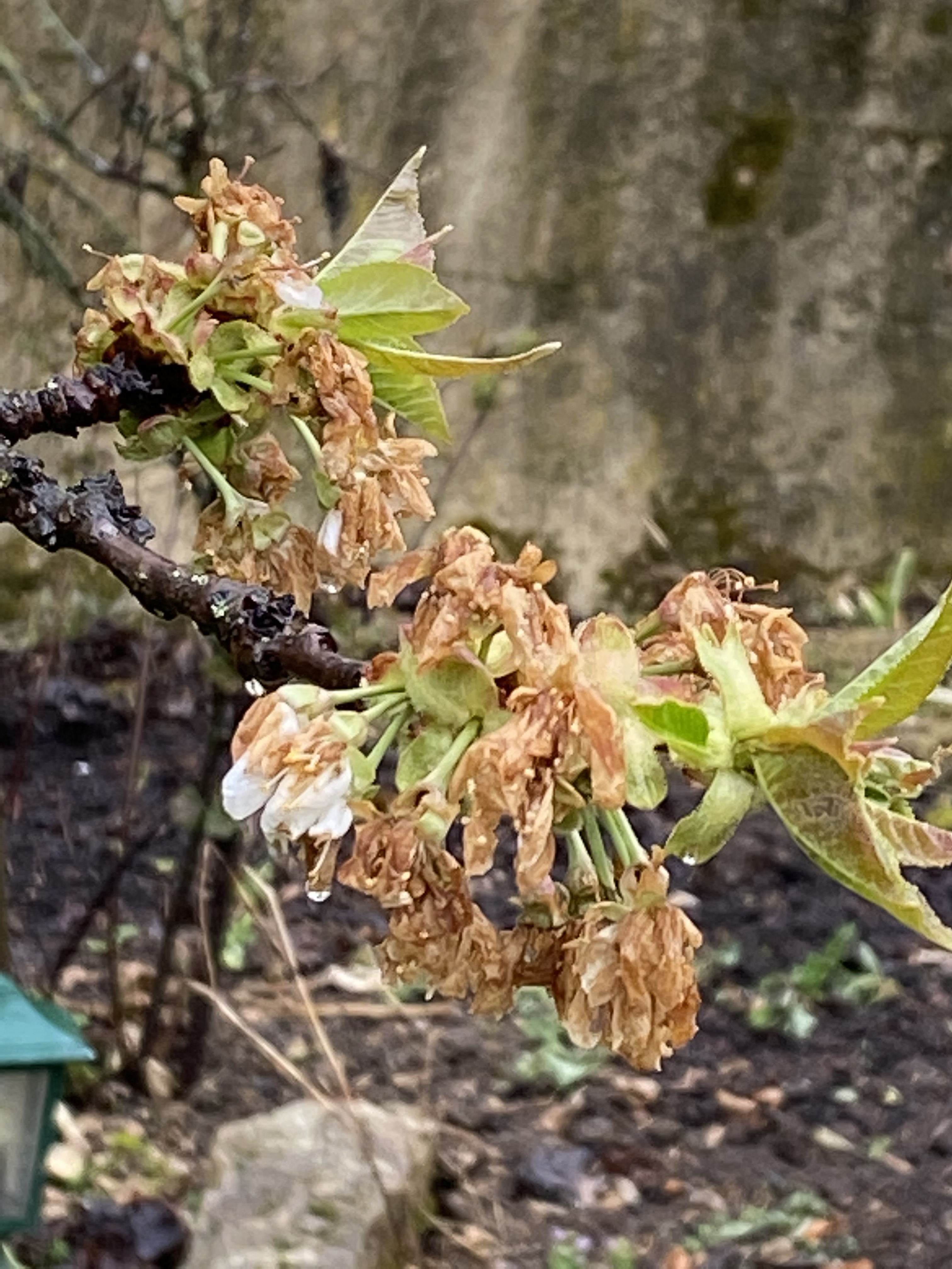 Les gelées printanières ont donné une belle couleur caramel aux fleurs de nos arbres fruitiers, cerisiers, abricotiers, pêchers, pruniers etc … La récolte des fruits à noyaux sera désastreuse en 2021 après une année à fruits exceptionnelle en 2020. C’est cyclique, les bonnes récoltes reviendraient tous les trois ans!!!