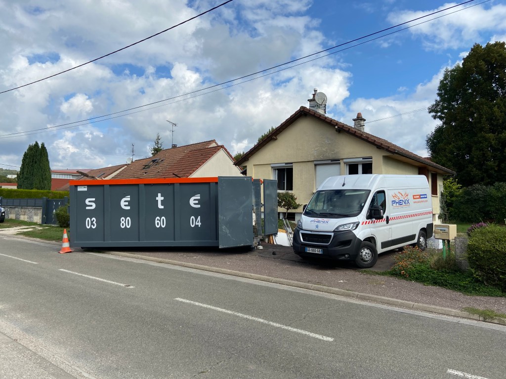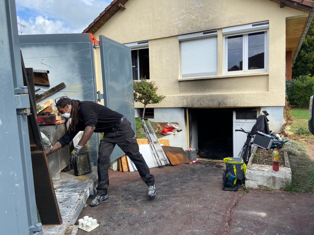 FIN JUIN 2022, UN INCENDIE ACCIDENTEL S’EST DÉCLARÉ DANS LE GARAGE DE LA MAISON D’UN COUPLE DE NONAGÉNAIRES DE LA RUE DU STADE. LES TRAVAUX DE DÉBLAIEMENT ONT DÉBUTÉ CE MATIN. MAIS LA REMISE EN ÉTAT DE LA MAISON DEMANDERA PLUSIEURS MOIS DE TRAVAUX.