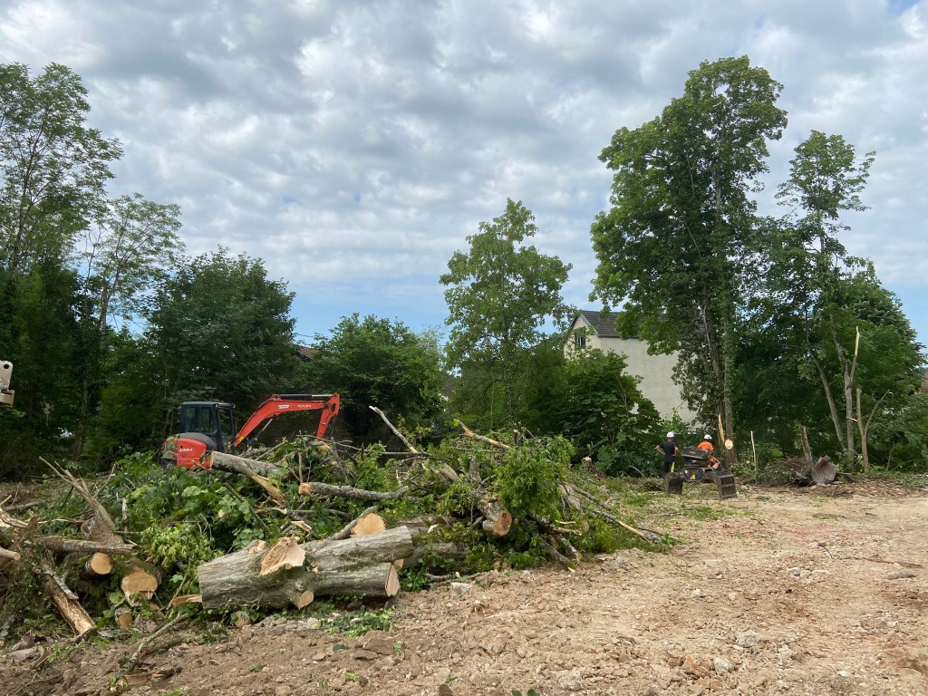 L’ANCIEN HANGAR AGRICOLE A ÉTÉ DÉSAMIANTÉ ET DÉMONTÉ POUR FAIRE PLACE À UN NOUVEAU PARKING DE DÉLESTAGE DU CENTRE DU VILLAGE.