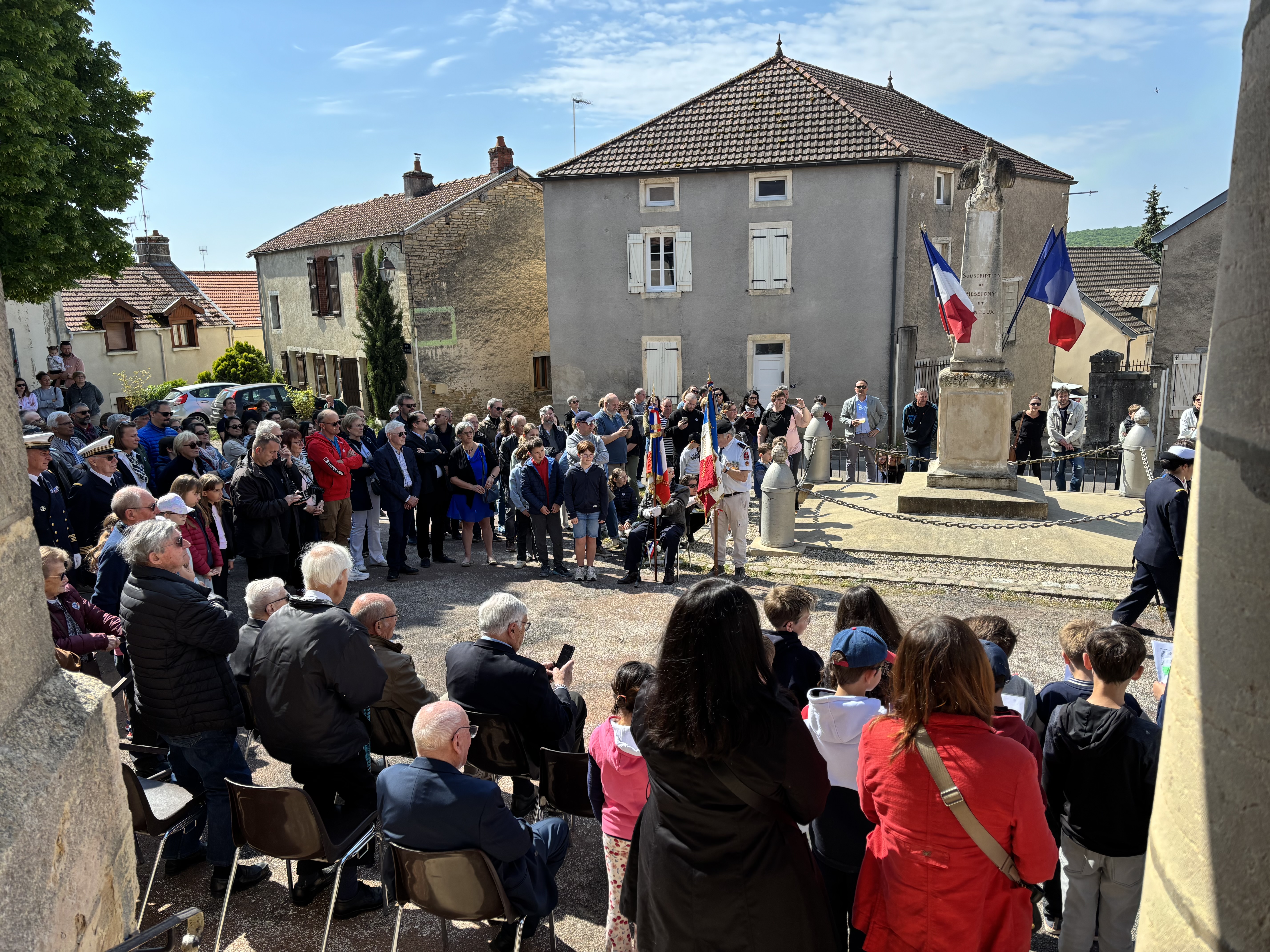 L’ACTE DE CAPITULATION DU 8 MAI 1945 FIXAIT À 23H01LA CESSATION DES HOSTILITÉS. LA MAIRIE DE MESSIGNY ET VANTOUX A ORGANISÉ À CETTE OCCASION UNE CÉRÉMONIE AU MONUMENT AUX MORTS AVEC LE CONCOURS DE LA PRÉPARATION MILITAIRE MARINE ET DES ENFANTS DES ÉCOLES . CETTE MANIFESTATION A SUSCITÉ L’INTÉRÊT D’UN GRAND NOMBRE DES HABITANTS. TOUS SE SONT ENSUITE RASSEMBLÉS AU COMPLEXE ROCHE SUZON POUR LE VERRE DE L’AMITIÉ.