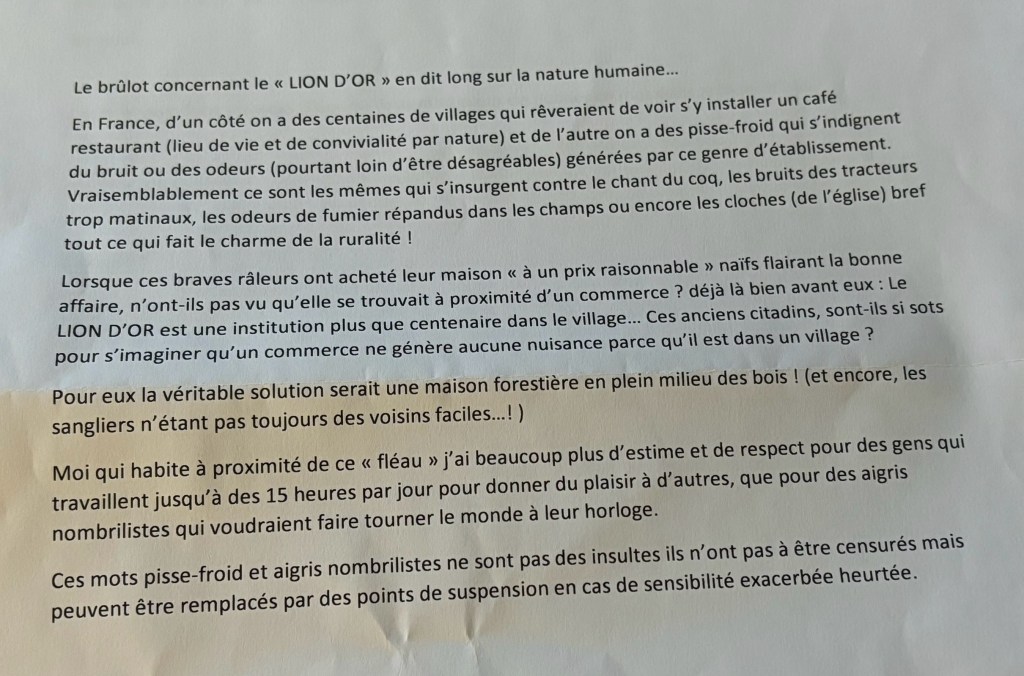 Qui peut envoyer un message d’insulte alors que le post d’Alice au sujet du Lion d’or, ne relève que du constat ?